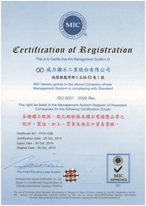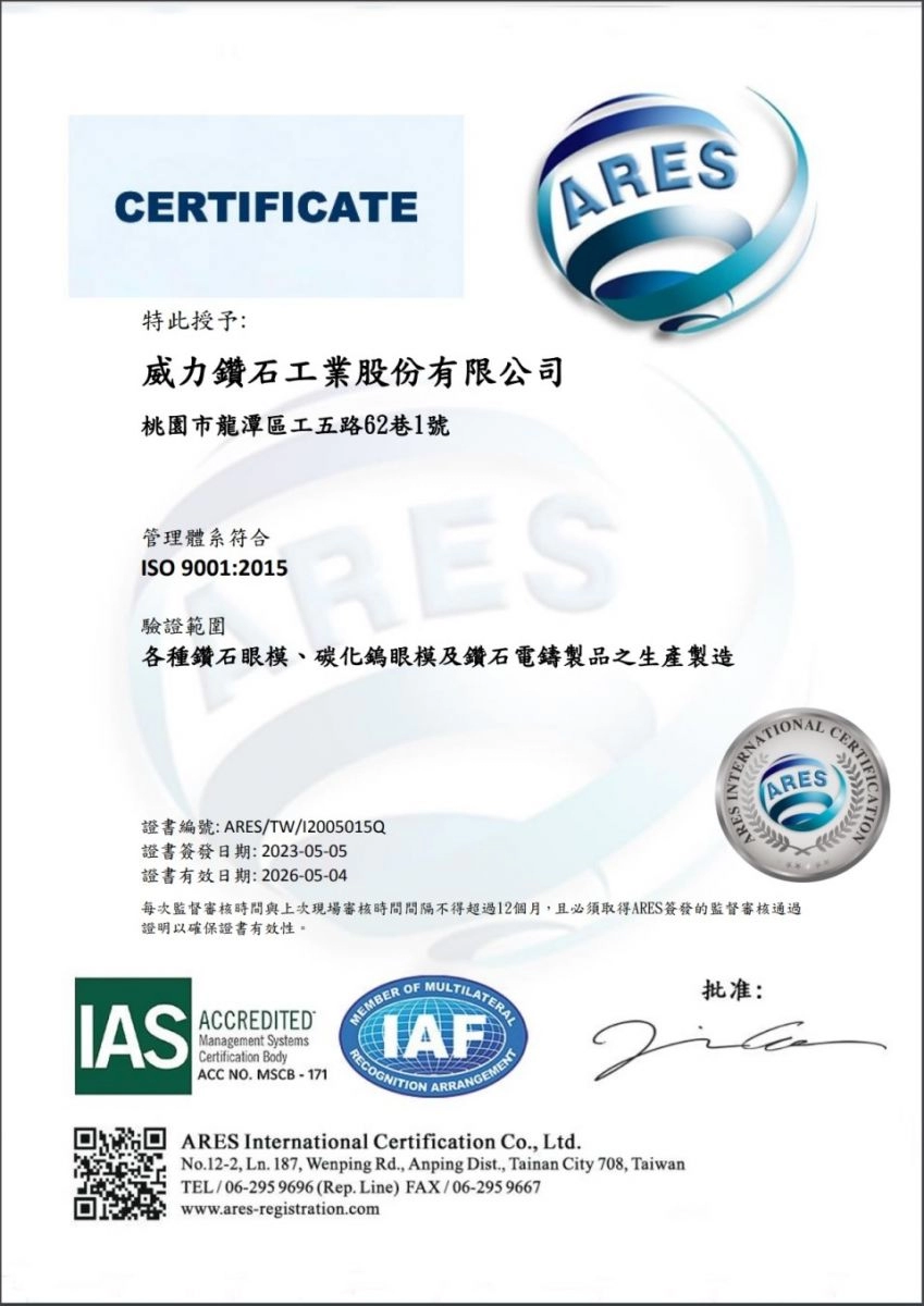 Our dedication to constant quality, client satisfaction, and ongoing development was demonstrated in 2010 when Weilly Diamond obtained ISO 9001 certification. With this certification, customers will be guaranteed that every product we supply satisfies strict international standards, boosting your trust in our reliability and efficacy.
